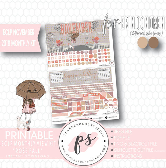 Rose Fall November 2018 Monthly View Kit Digital Printable Planner Stickers (for Standard A5 Wide Monthly 1.6" Width Date Boxes)