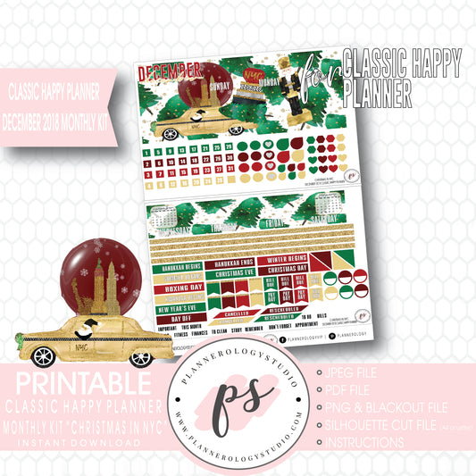 Christmas in NYC December 2018 Monthly View Kit Digital Printable Planner Stickers (for use with Classic Happy Planner)