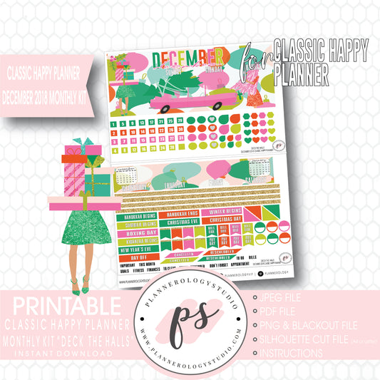 Deck the Halls Christmas December 2018 Monthly View Kit Digital Printable Planner Stickers (for use with Classic Happy Planner)
