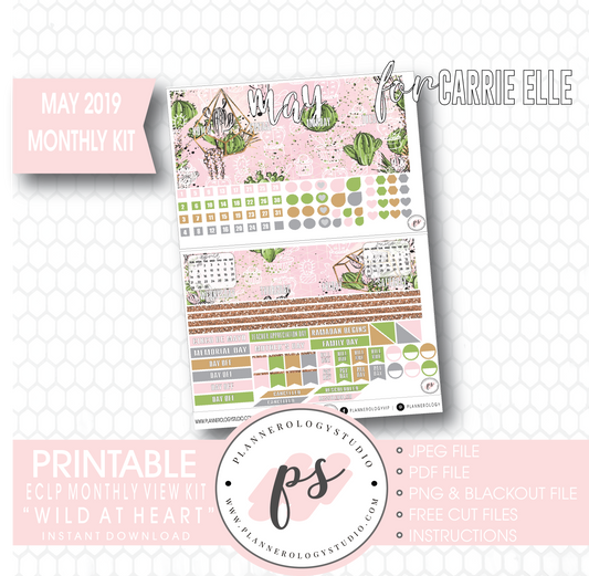 Wild At Heart May 2019 Monthly View Kit Digital Printable Planner Stickers (for use with Carrie Elle Planner)