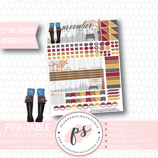 Fall in the Park November 2017 Monthly View Kit Printable Planner Stickers (for use with ECLP Small Hardbound)