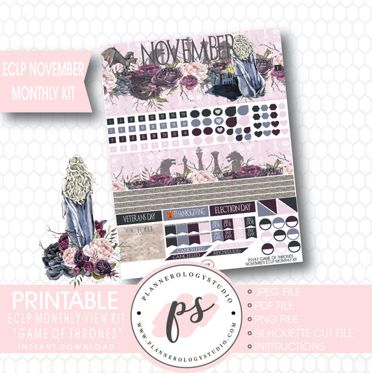 Game of Thrones (GOT) November 2017 Monthly View Kit Printable Planner Stickers (for use with ECLP)