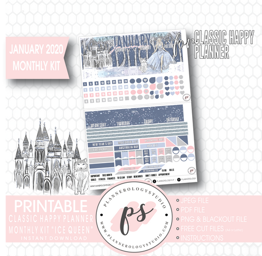 Ice Queen January 2020 Monthly View Kit Digital Printable Planner Stickers (for use with Classic Happy Planner)