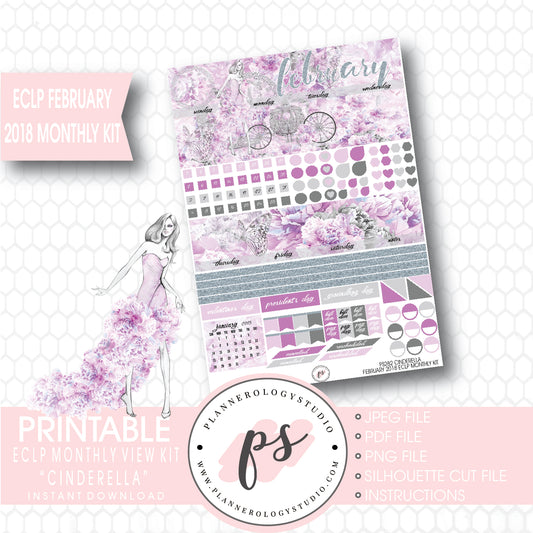 Cinderella February 2018 Monthly View Kit Printable Planner Stickers (for use with ECLP)