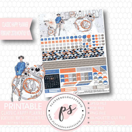 May the Force Be With You February 2018 Monthly View Kit Printable Planner Stickers (for use with Classic Happy Planner)