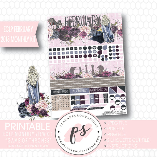 Game of Thrones (GOT) February 2018 Monthly View Kit Digital Printable Planner Stickers (for use with ECLP)