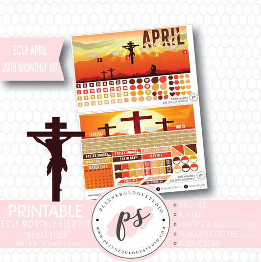 He Has Risen April Easter 2018 Monthly View Kit Digital Printable Planner Stickers (for Standard A5 Wide Monthly 1.6" Width Date Boxes)