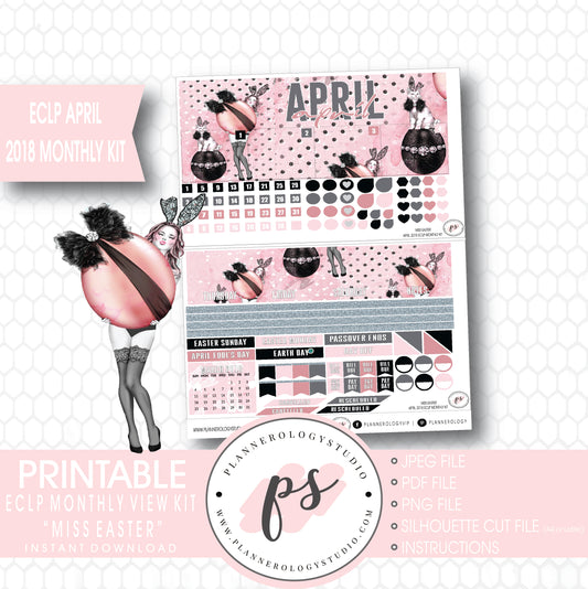 Miss Easter April 2018 Monthly View Kit Digital Printable Planner Stickers (for Standard A5 Wide Monthly 1.6" Width Date Boxes)