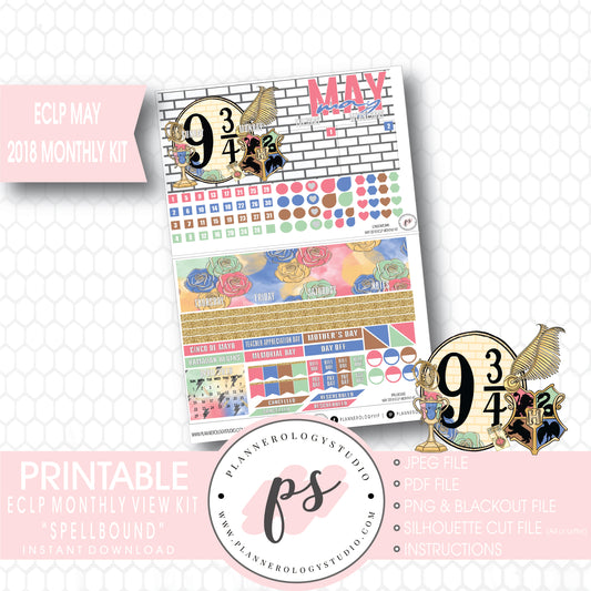 Spellbound (Harry Potter) May 2018 Monthly View Kit Digital Printable Planner Stickers (for Standard A5 Wide Monthly 1.6" Width Date Boxes)