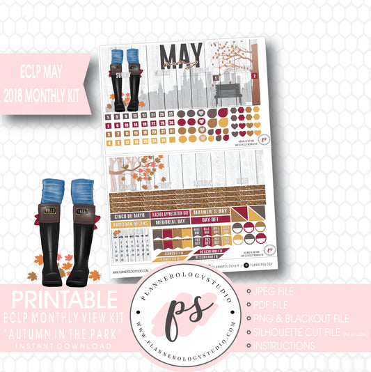 Autumn in the Park May 2018 Monthly View Kit Digital Printable Planner Stickers (for Standard A5 Wide Monthly 1.6" Width Date Boxes)
