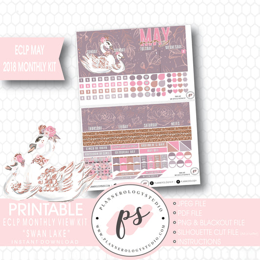 Swan Lake (Mother's Day) May 2018 Monthly View Kit Digital Printable Planner Stickers (for Standard A5 Wide Monthly 1.6" Width Date Boxes)