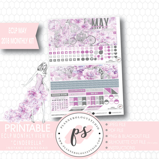 Cinderella May 2018 Monthly View Kit Digital Printable Planner Stickers (for Standard A5 Wide Monthly 1.6" Width Date Boxes)