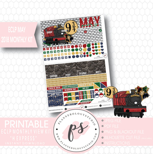 H Express (Harry Potter) May 2018 Monthly View Kit Digital Printable Planner Stickers (for Standard A5 Wide Monthly 1.6" Width Date Boxes)