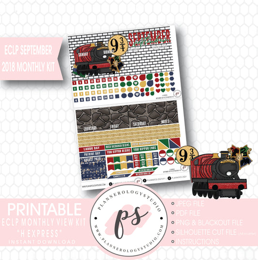 H Express (Harry Potter) September 2018 Monthly View Kit Digital Printable Planner Stickers (for Standard A5 Wide Monthly 1.6" Width Date Boxes)