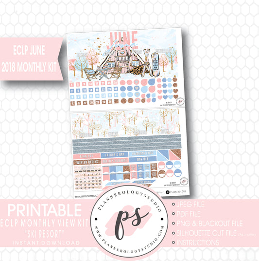 Ski Resort (Winter) June 2018 Monthly View Kit Digital Printable Planner Stickers (for Standard A5 Wide Monthly 1.6" Width Date Boxes)
