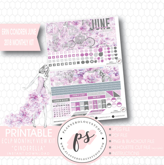 Cinderella June 2018 Monthly View Kit Digital Printable Planner Stickers (for Standard A5 Wide Monthly 1.6" Width Date Boxes)