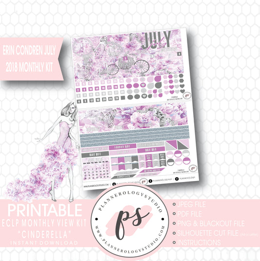Cinderella July 2018 Monthly View Kit Digital Printable Planner Stickers (for Standard A5 Wide Monthly 1.6" Width Date Boxes)