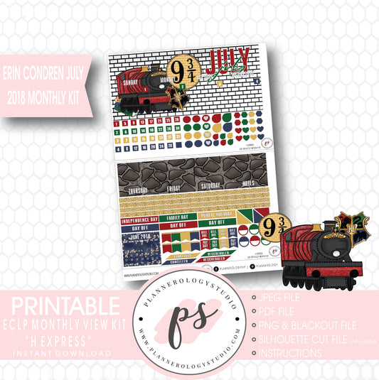 H Express (Harry Potter) July 2018 Monthly View Kit Digital Printable Planner Stickers (for Standard A5 Wide Monthly 1.6" Width Date Boxes)