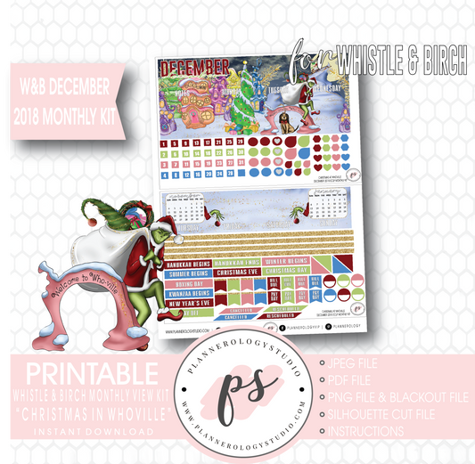 Christmas at Whoville (Grinch) December 2018 Monthly View Kit Digital Printable Planner Stickers (for use with Whistle & Birch Planner)