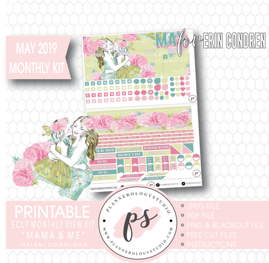 Mama & Me (Mother's Day) May 2019 Monthly View Kit Digital Printable Planner Stickers (for Standard A5 Wide Monthly 1.6" Width Date Boxes)