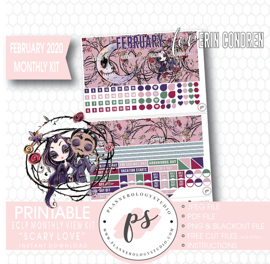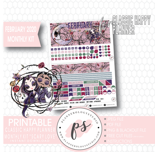 Scary Love (Valentines Day) February 2020 Monthly View Kit Digital Printable Planner Stickers (for use with Classic Happy Planner)