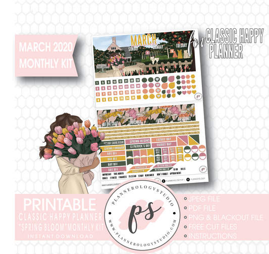 Spring Bloom March 2020 Monthly View Kit Digital Printable Planner Stickers (for use with Classic Happy Planner)