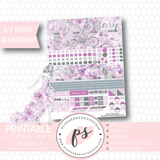 Cinderella January 2018 Monthly View Kit Printable Planner Stickers (for use with ECLP)