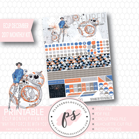 May the Force Be With You December 2017 Monthly View Kit Printable Planner Stickers (for use with ECLP)