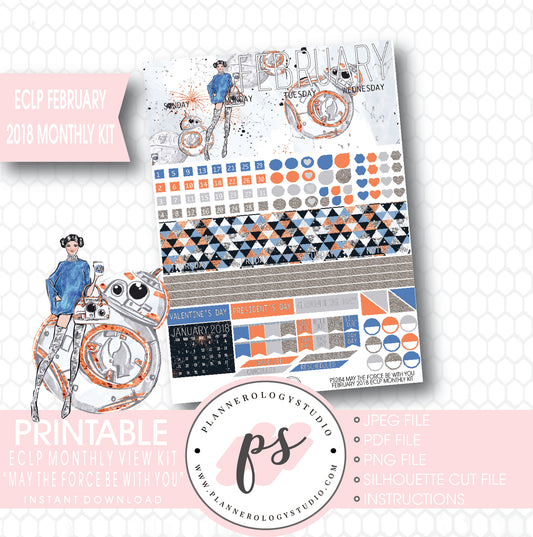May the Force Be With You February 2018 Monthly View Kit Printable Planner Stickers (for use with ECLP)