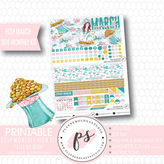 Kiss Me Irish St. Patrick's Day March 2018 Monthly View Kit Digital Printable Planner Stickers (for Standard A5 Wide Monthly 1.6" Width Date Boxes)