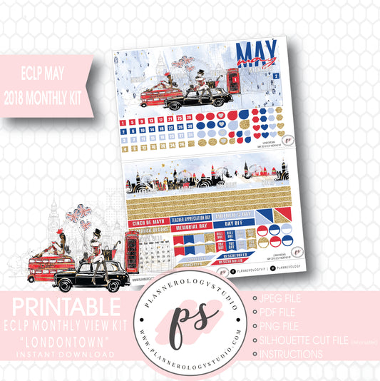 Londontown May 2018 Monthly View Kit Digital Printable Planner Stickers (for Standard A5 Wide Monthly 1.6" Width Date Boxes)