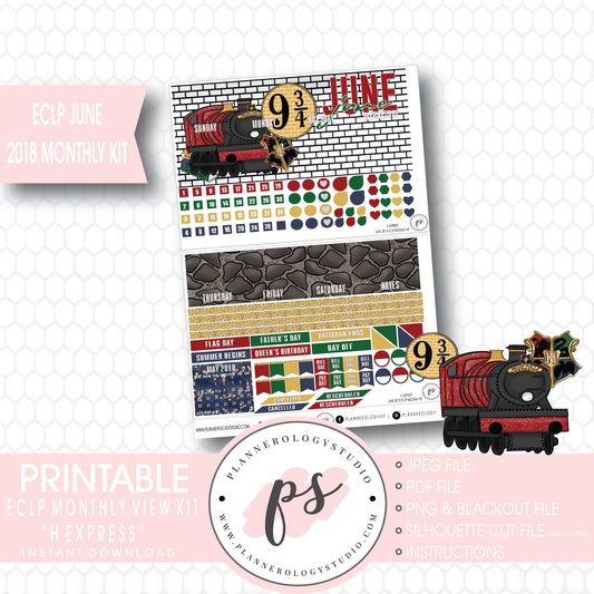 H Express (Harry Potter) June 2018 Monthly View Kit Digital Printable Planner Stickers (for Standard A5 Wide Monthly 1.6" Width Date Boxes)