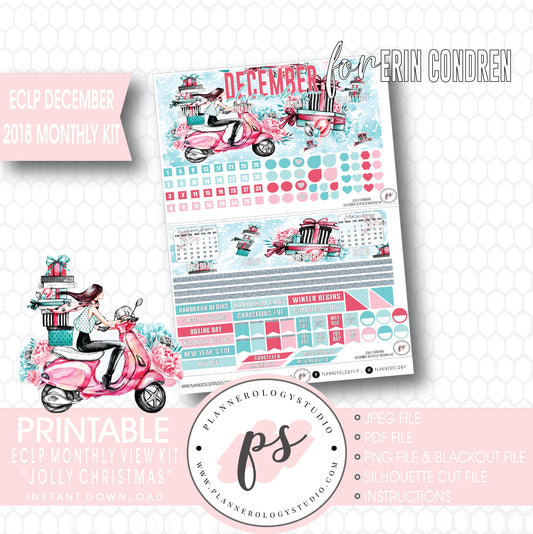Jolly Christmas December 2017 Monthly View Kit Printable Planner Stickers (for use with ECLP Small Hardbound)