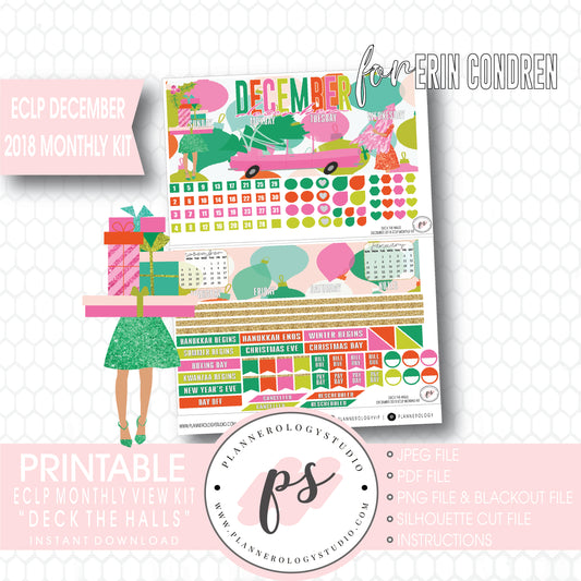 Deck the Halls Christmas December 2018 Monthly View Kit Digital Printable Planner Stickers (for Standard A5 Wide Monthly 1.6" Width Date Boxes)
