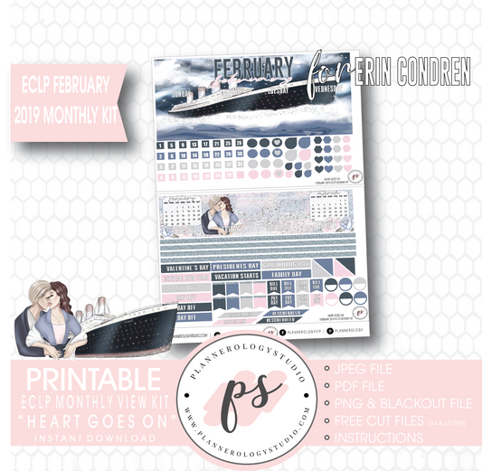 Heart Goes On (Titanic) February 2019 Monthly View Kit Digital Printable Planner Stickers (for Standard A5 Wide Monthly 1.6" Width Date Boxes)
