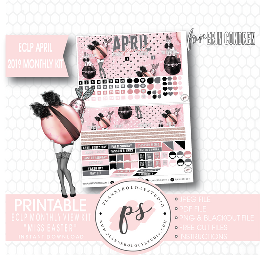 Miss Easter April 2019 Monthly View Kit Digital Printable Planner Stickers (for Standard A5 Wide Monthly 1.6" Width Date Boxes)