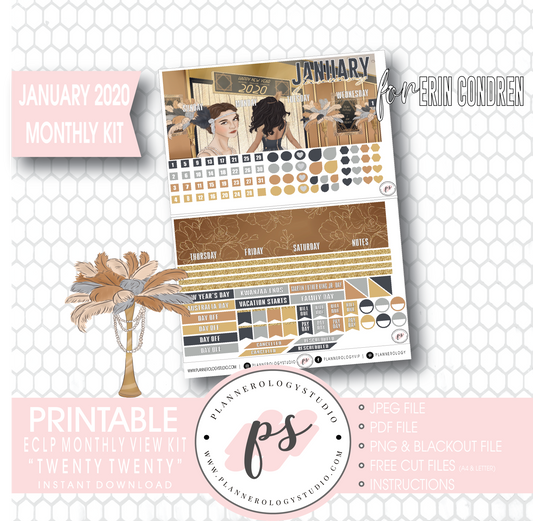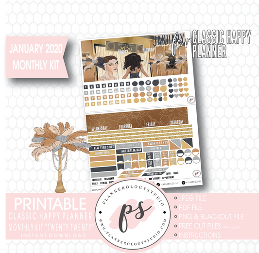 Twenty Twenty (New Years) January 2020 Monthly View Kit Digital Printable Planner Stickers (for use with Classic Happy Planner)
