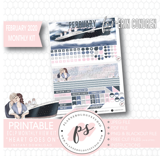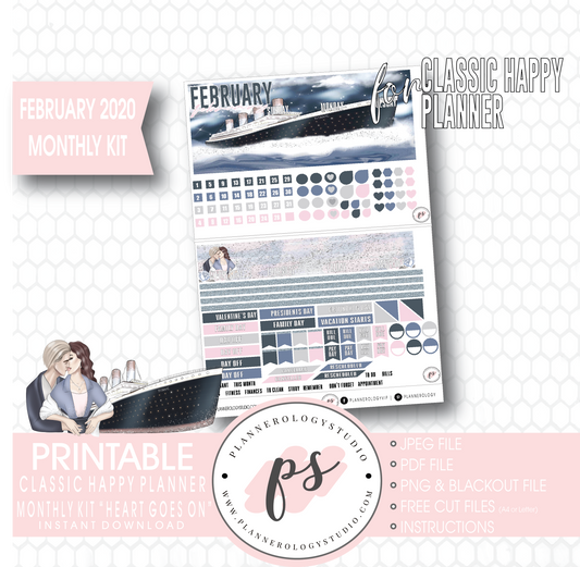 Heart Goes On (Titanic) February 2020 Monthly View Kit Digital Printable Planner Stickers (for use with Classic Happy Planner)