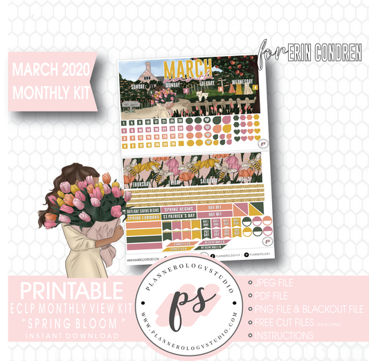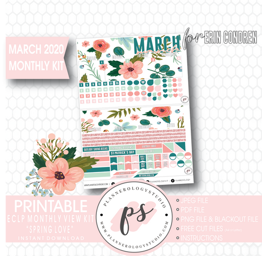 Spring Love March 2020 Monthly View Kit Digital Printable Planner Stickers (for use with Classic Happy Planner)