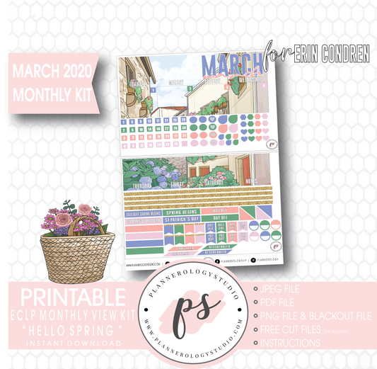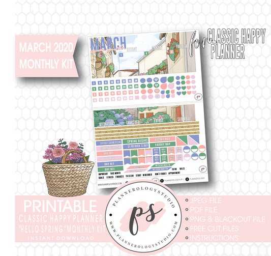 Hello Spring March 2020 Monthly View Kit Digital Printable Planner Stickers (for use with Classic Happy Planner)