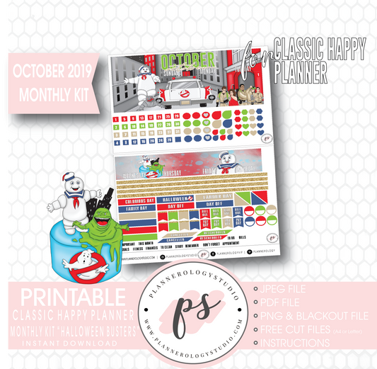 Halloween Busters October 2019 Monthly View Kit Printable Planner Stickers (for use with Classic Happy Planner)