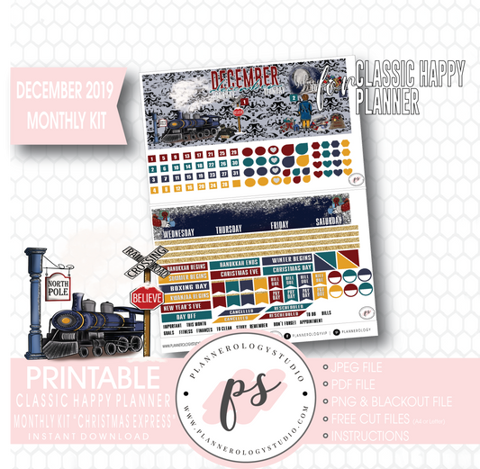 Christmas Express (The Polar Express) December 2019 Monthly View Kit Digital Printable Planner Stickers (for use with Classic Happy Planner)