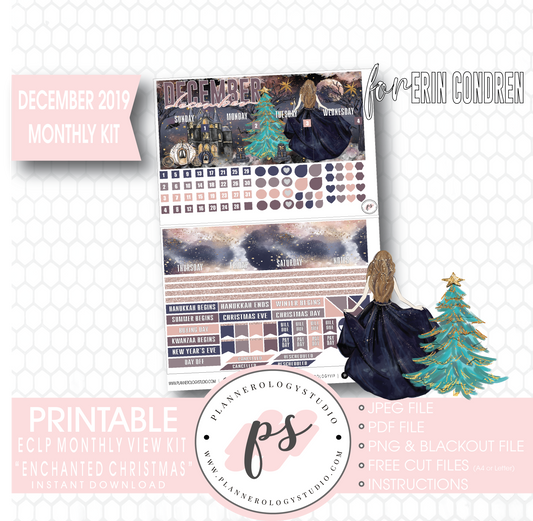 Enchanted Christmas December 2019 Monthly View Kit Digital Printable Planner Stickers (for Standard A5 Wide Monthly 1.6" Width Date Boxes)