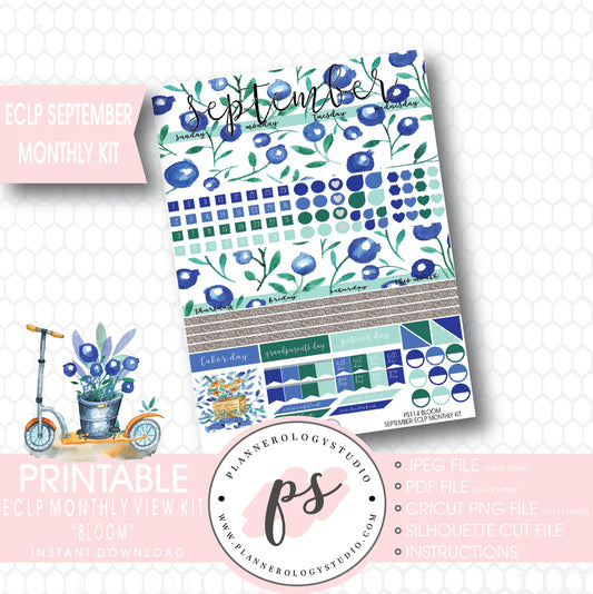 "Bloom" September 2017 Monthly View Kit Printable Planner Stickers (for use with ECLP)
