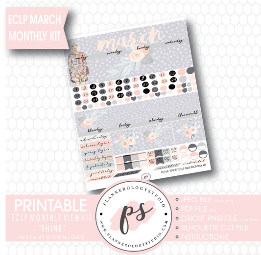 Shine March 2017 Monthly View Kit Printable Planner Stickers (for use with ECLP)