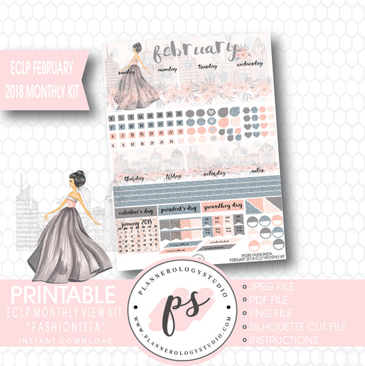 Fashionista February 2018 Monthly View Kit Printable Planner Stickers (for use with ECLP)