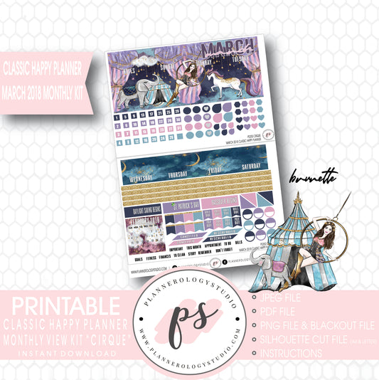 Cirque March 2018 Monthly View Kit Digital Printable Planner Stickers (for use with Classic Happy Planner)