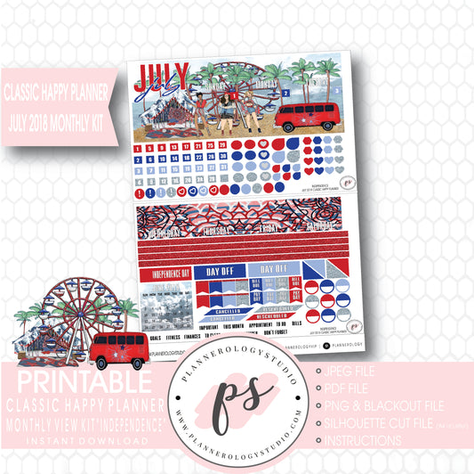 Independence July 2018 Monthly View Kit Digital Printable Planner Stickers (for use with Classic Happy Planner)