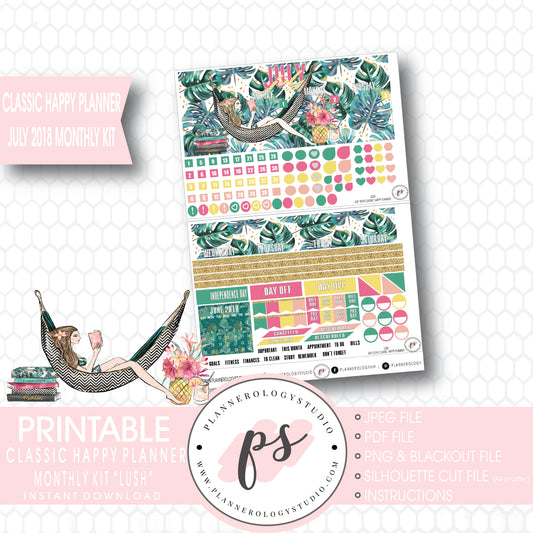 Lush Summer July 2018 Monthly View Kit Digital Printable Planner Stickers (for use with Classic Happy Planner)