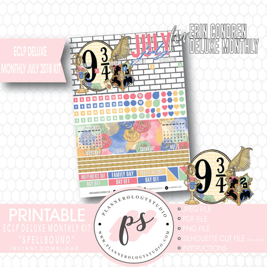 Spellbound (Harry Potter) July 2018 Monthly View Kit Digital Printable Planner Stickers (for use with Erin Condren Deluxe Monthly Planner)